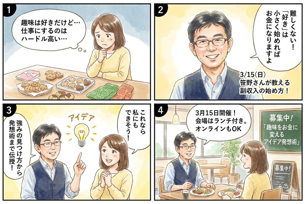 販促工房株式会社 代表。「販促軍師」として、個人事業主から中小企業まで3000件以上の販促支援を行ってきた実績を持つ。名刺・チラシ・ホームページ制作だけでなく、SNS活用・AI導入・オンラインセミナー運営など、初心者にも分かりやすいアドバイスと実践サポートが好評。特に、“売り込まないのに選ばれる発信術”や“お金をかけない集客の仕組みづくり”を得意とし、趣味起業・プチ副業を始めたい方に向けたセミナー登壇も多数。難しいことをやさしく、すぐ行動できる形にするのがモットー。