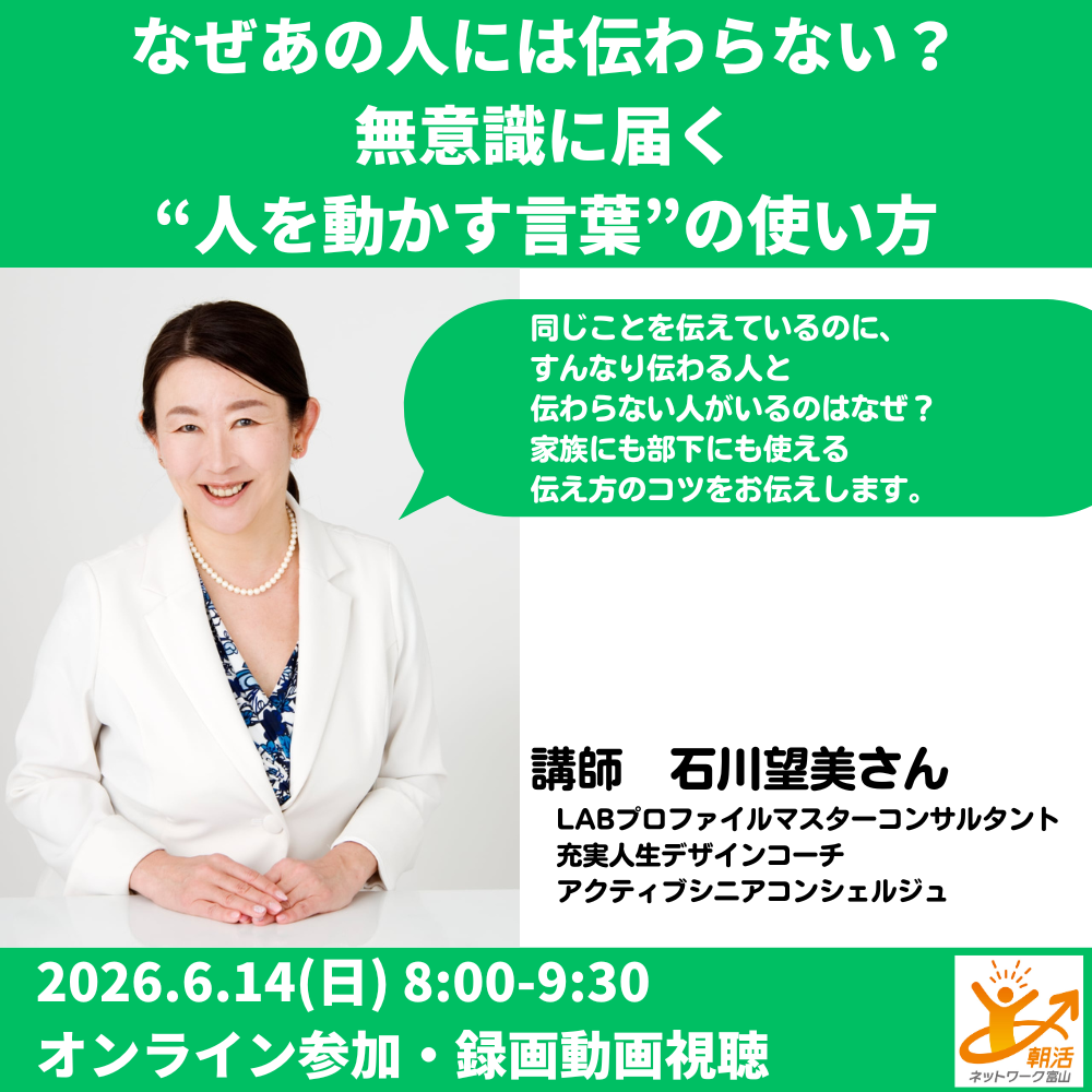 | 主催者 | 朝活ネットワーク富山 |