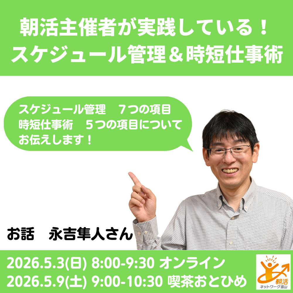 | 主催者 | 朝活ネットワーク富山 |